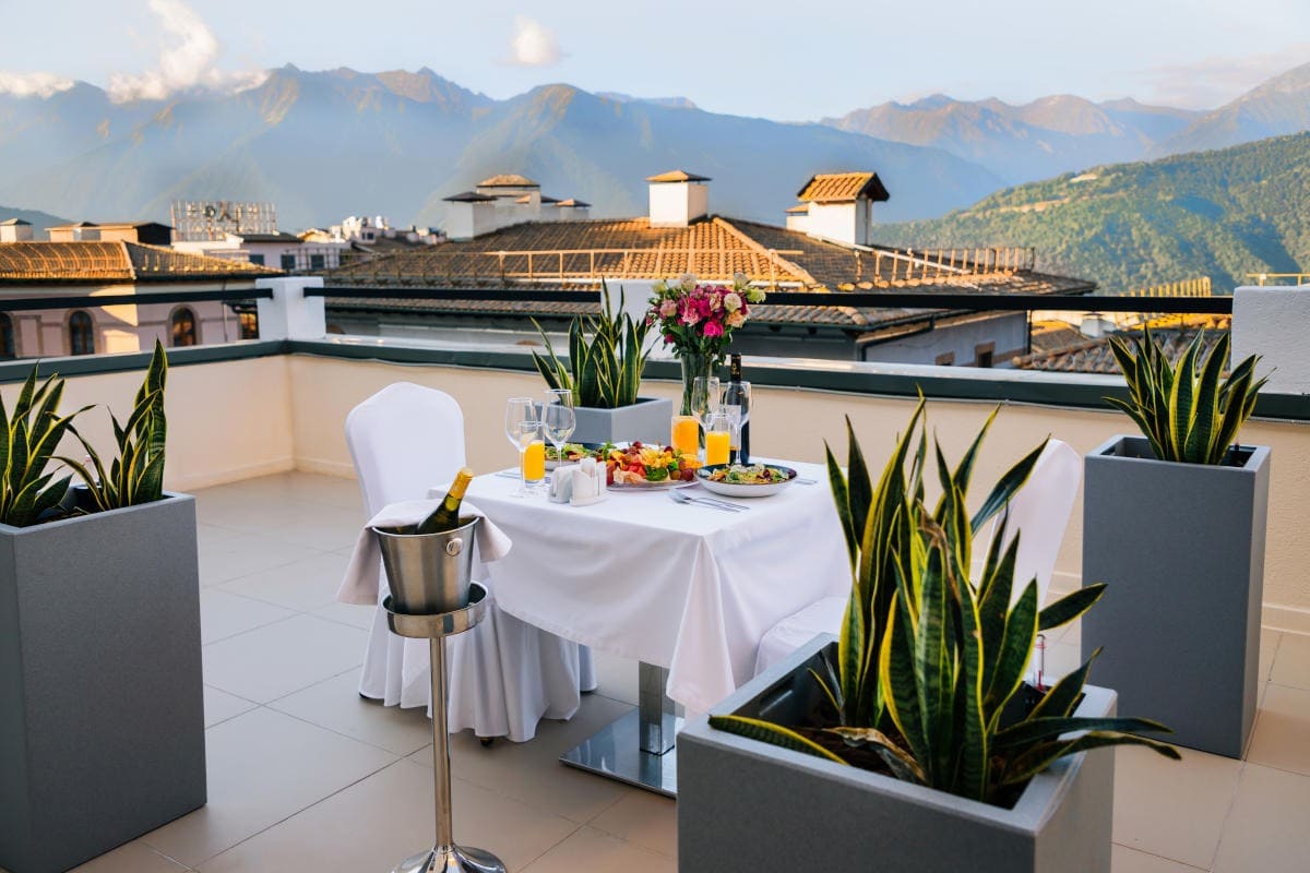 Гостям можно собраться за большим банкетным столом или провести романтический ужин, любуясь великолепными пейзажами.